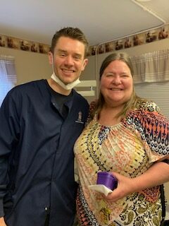 Patsy came to the dental mission with dental needs for fillings and extractions and had an old removable partial denture with her front artificial teeth broken out of it. It was distressing to her that she could not smile like she wanted due to her missing front teeth. Through the work of her dental mission team, her removable partial denture was rejuvenated with the help of a dental lab that donated their time and materials to help her have a new smile. After years of an unsightly smile, Patsy was brought to tears of joy when she saw her smile and hugged the entire team! She was an example of one touched by the love of Christ that occurs regularly at the dental mission!